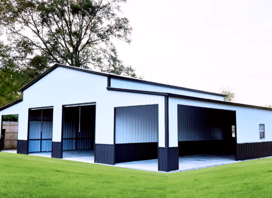 If you’re installing on a concrete base, Big T Buildings uses anchors that are specially made for use with concrete. Concrete expansion anchors are highly recommended when working with concrete, as they give the best results. When the base rails are in place, the team will mark the location of the center hole and drill about 3”- 4” into the concrete. They will then place a concrete expansion anchor inside the hole, tighten the nut, and secure the base rail. Additional steps may be taken to secure the structure and prevent any movement during high winds or severe weather.